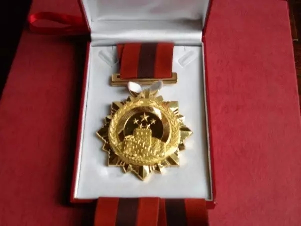 1999年9月18日,在中華人民共和國(guó)成立五十周年之際,黨中央、國(guó)務(wù)院、中央軍委隆重表彰為中國(guó)“兩彈一星”事業(yè)作出突出貢獻(xiàn)的23位科技專家,并授予他們“兩彈一星”功勛獎(jiǎng)?wù)?。中?guó)的“兩彈一星”,是20世紀(jì)中華民族創(chuàng)建的輝煌偉業(yè),是中華民族為之自豪的偉大成就。郭鳴在1999年參加了“兩彈一星”金質(zhì)勛章的制作工作。該獎(jiǎng)?wù)轮睆?厘米,用99.8%純金鑄造。獎(jiǎng)?wù)轮黧w圖案由五星、長(zhǎng)城、橄欖枝和光芒線組成。獎(jiǎng)?wù)轮行牡奈逍谴碇腥A人民共和國(guó);長(zhǎng)城既象征著中華民族堅(jiān)強(qiáng)不屈的精神,又象征著共和國(guó)堅(jiān)不可摧的國(guó)防;橄欖枝則表明我國(guó)研制“兩彈一星”的目的是為了維護(hù)世界和平。該獎(jiǎng)?wù)略O(shè)計(jì)端莊、章型宏偉、制作精良,是我國(guó)歷史上第一次用純金制作的勛章,更由于數(shù)量?jī)H有23枚,十分珍貴。